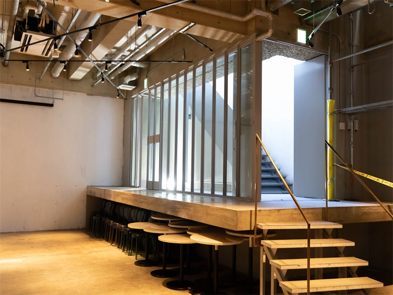 控室には小さいですが水回りがあり、電子レンジや冷蔵庫などを用意するつもりです。じゅうたんを敷いてくつろげるスペースも現在作っています。