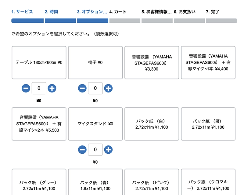 ※オプションは後から変更、追加できますが直前すぎると対応できかねる場合がございますので、ご了承ください。