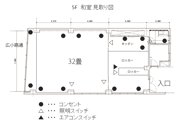 With an elevator on site, equipment loading/unloading is smooth. There are multiple power outlets throughout the floor, so you can easily use electronic devices and lighting.