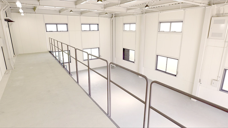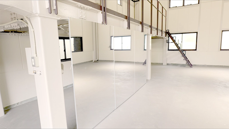 Shinsakae Space features a large open area of over 100 square meters. The flat, step-free floor design allows safe practice for stretching and fundamental movements. Numerous windows provide excellent ventilation, and the open ceiling allows coaches to observe practice sessions from the second floor.
