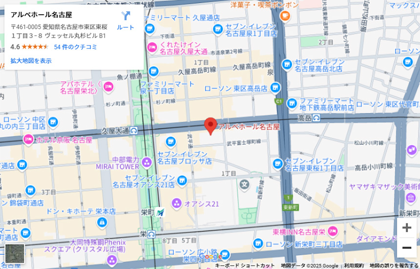 住所:愛知県名古屋市東区東桜1丁目3−8 ヴェッセル丸杉ビル
