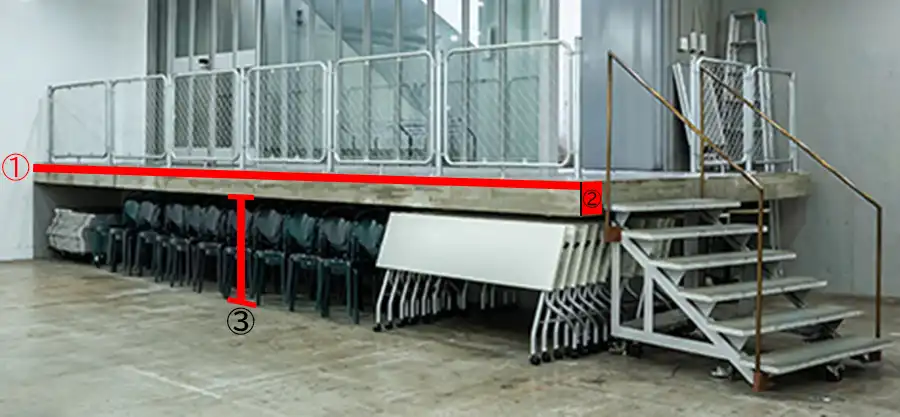 ③床から壁の上部せり出しまで:約3,850 ㎜