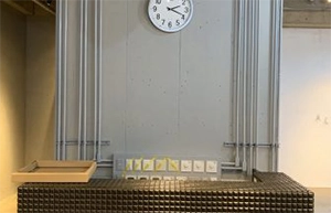 今までアルべホール内に時計がありませんでしたが、DJブースの上に設置をいたしました!!アルべホールの広さに家庭用の時計…