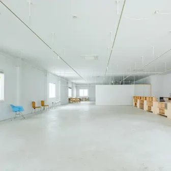 写真・動画の撮影やワークショップなど、多目的にご利用いただけます。奥行13m、横8m、高さ6mの空間です。吹き抜け二階建てで天井まで高さがあるので、アイ…