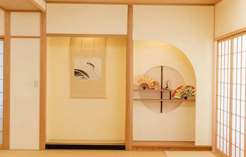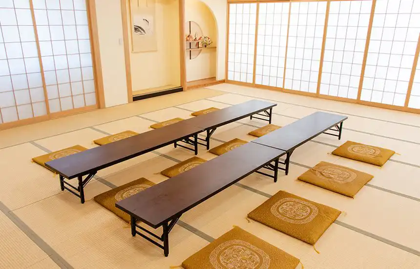 32畳の広さがあり、目安として30名様程度まで快適にご利用いただけます。展示会、着付け教室、撮影、大規模な懇親会など、大人数の集まりに対応可能です。
