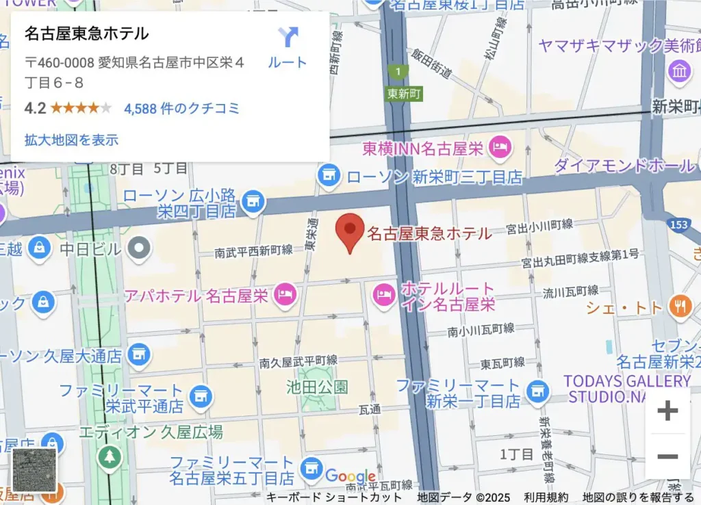 - 住所 愛知県名古屋市中区栄4丁目6−8(名古屋東急ホテル内)