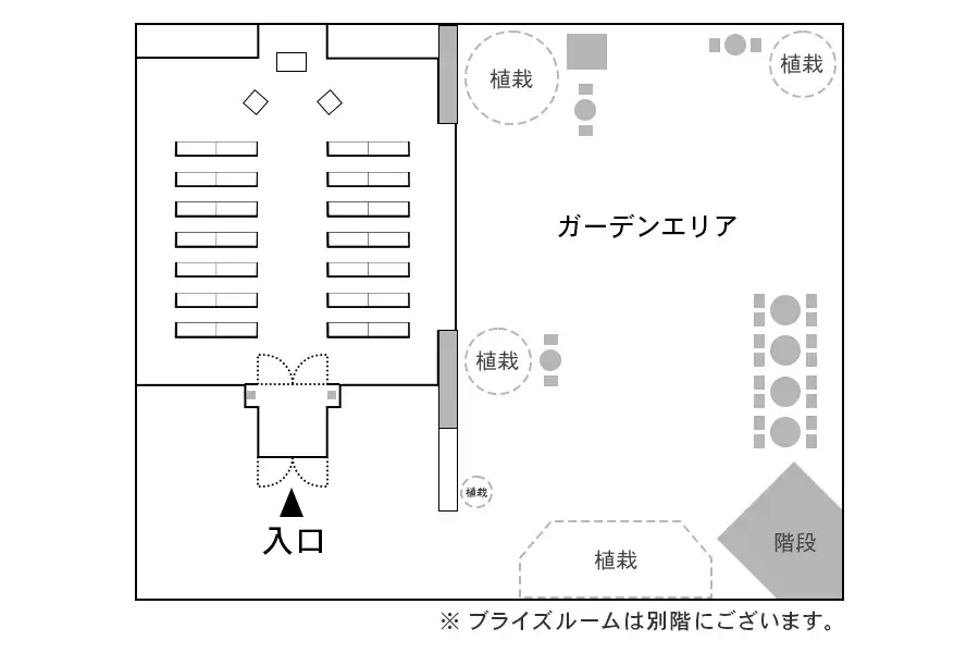 | 床材 | チャペル:大理石 ブライズルーム:絨毯 |